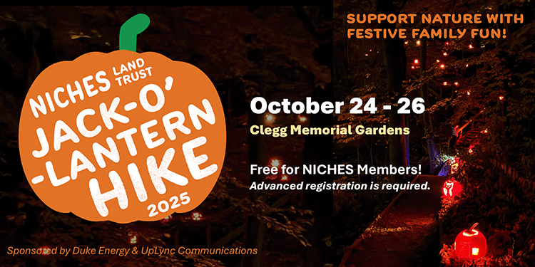 Join NICHES Land Trust for festive fun at Clegg Memorial Gardens! Families can enjoy a non-scary, nighttime stroll along a trail lit with Jack-O'-Lanterns carved by community members. It's a magical experience in nature that supports NICHES and its mission to protect, restore and sustain Northern Indiana’s ecosystems.